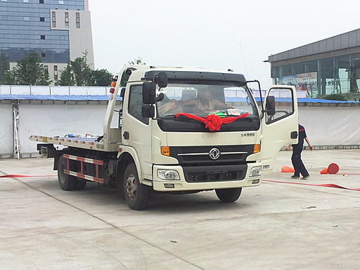 圖為重慶一客戶在我廠 定購的一輛東風(fēng)凱普特平板一拖二清障車送車前在廠區(qū)做準(zhǔn)備