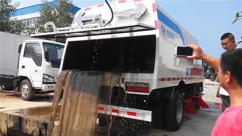 光大集團(tuán)定購(gòu)的多功能掃路車為訂購(gòu)版,采用的是東風(fēng)福瑞卡底盤改裝,垃圾箱容積2立方,水箱容積3立方,另外加裝有前沖后灑功能,閑暇時(shí)可用于沖灑路面。