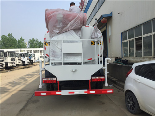 灑水車額定轉速:1450r/min;流量:60m3/h;自吸高度:7.5m;灑水寬度:≥14。最大射程:≥28m。可調節成柱狀,射程≥28m;也可調節成霧狀,射程≥15m。可選配藥盤、打藥機,消防接頭,也可選裝消防泵,射程≥40m,情況緊急時作水罐消防車用來滅火。