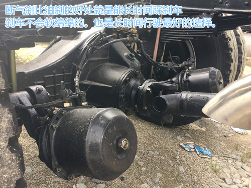 本車還有很多防護(hù)措施,列如對電瓶就防護(hù)的非常好,上面采用的是密封式蓋子,能擋風(fēng)擋雨,防曬,防小偷,電瓶旁邊是兩個氣缸,這兩個氣缸就是斷氣剎儲存氣用的,只要壓力達(dá)到6才能起步,才能才剎車,斷氣剎比油剎的好處就是能長時間踩剎車,剎車不會軟綿綿的。也是長時間行駛最好的選擇。