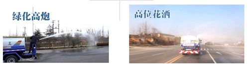 前沖主要是對路面進(jìn)行沖洗,主要用于環(huán)衛(wèi)路面清洗,后灑主要用于降塵,右位花灑也用于降塵也可以用于澆灌樹木。后工作平臺高炮就厲害了,這個灑水車后工作平臺高炮能用于消防滅火,也能用于澆灌距離遠(yuǎn)又高的樹木,近的地方可用霧狀進(jìn)行澆灌,就是多功能灑水炮。