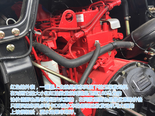 東風(fēng)多利卡D9灑水車,采用東風(fēng)玉柴160馬力發(fā)動機(jī),六個缸的發(fā)動機(jī)動力是非常強(qiáng)勁的,不論是同品牌下的發(fā)動機(jī)都沒有這款馬力強(qiáng)勁,結(jié)對時同款車型里的扛把子,無車能別。紅色的外表,一眼看上去就是事東風(fēng)旗下的玉柴發(fā)動機(jī),在對照它的大小和缸的數(shù)量就知道是玉柴160馬力的,論價值那也是非常經(jīng)濟(jì)實惠的,在同款里面也是最優(yōu)惠的價格,只要買的東風(fēng)多利卡D9灑水車的都說這款發(fā)動機(jī)馬力強(qiáng)勁,上坡很輕松,灑水效果非常好。