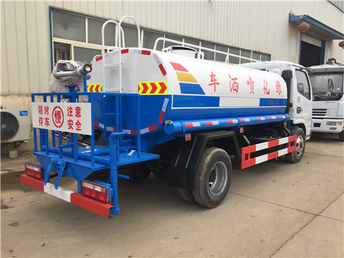 東風(fēng)多利卡5噸灑水車采用的是玉柴115馬力發(fā)動機,3300軸距,7.00鋼絲胎,五檔變速箱,帶中控鎖,電動窗,汽剎,帶空調(diào).有免征公告,有環(huán)保公告。有免征,嚴格按公告尺寸生產(chǎn)。前沖后灑,后工作平臺帶高炮,右位花灑,側(cè)噴。