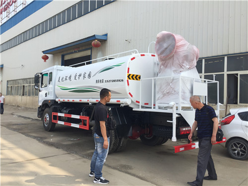 我的第二臺灑水車用到是東風(fēng)多利卡5噸灑水車,該灑水車是要求我們送車到陜西的,我在辦理該東風(fēng)多利卡5噸灑水車的時候,送車師傅就幫我在車間里試車,對該灑水車車輛進行前沖后灑,側(cè)噴和后工作平臺高炮的測試,自吸等都完好后進行領(lǐng)取灑水車配件,工具等。