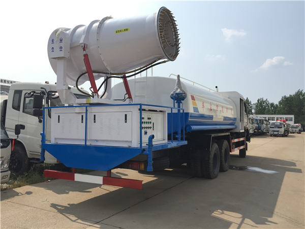 功能說明: 抑塵車前裝有鴨形噴嘴或圓頭沖嘴,后面裝有圓柱開灑水噴嘴或蓮蓬頭噴嘴,后部有一工作平臺,裝配有水炮。帶消防接頭,帶自流閥,帶自吸功能,選配20米綠化消防卷盤。