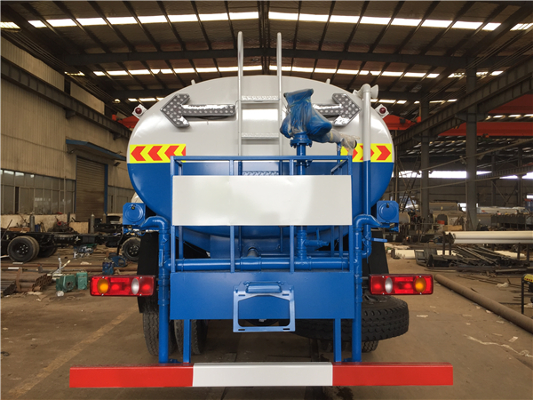 4、灑水車罐體采用噴鋅防銹處理,并且內涂無毒水艙漆,達到儲存飲用水標準,外觀面漆為金屬漆,使用時間長,加粗型U型螺栓使罐體和底盤連接更為穩固。