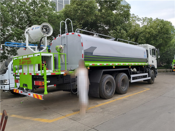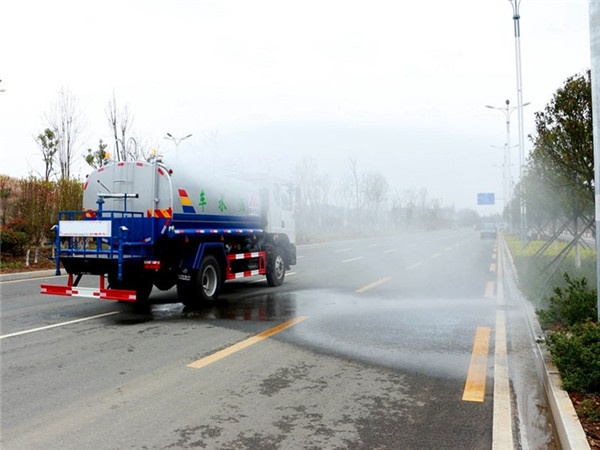 3,東風特商10噸灑水車是一款灑水車中熱銷產品,免交購置附加稅,高配置、低價格,經濟實惠,美觀大方,駕駛舒適,采用東風公司原裝底盤(全國聯保)。整車長不超過9米,常用發動機玉柴160馬力或康明斯170馬力國六發動機。10.00-20,輪胎 ,斷氣剎。容積一般為12立方(12噸)。主要適合于城市、小區、工廠的小型綠化環衛用。灑水車帶前沖,后灑,帶側噴、帶后工作平臺、平臺上安裝綠化灑水高炮(高炮可360°旋轉,可連續調成直沖狀、大雨、小雨、毛毛雨),配備專用大功率灑水泵,帶消防接頭,帶自流閥,帶自吸功能。垂直吸程≥6米,灑水寬度≥14米,高炮射程≥28米。大功率專用灑水泵,比同類灑水泵壓力大、吸程遠、使用壽命長,克服其它灑水泵易被雜物纏住、壓力小、吸水慢的缺點,引領國內外灑水泵行業標準,市場占有率93%前沖(噴)后灑,帶側噴,罐體后帶工作平臺,平臺上安裝綠化灑水炮,灑水炮可全方位旋轉,可連續調成直沖狀、大雨、小雨、毛毛雨,帶安全護欄。