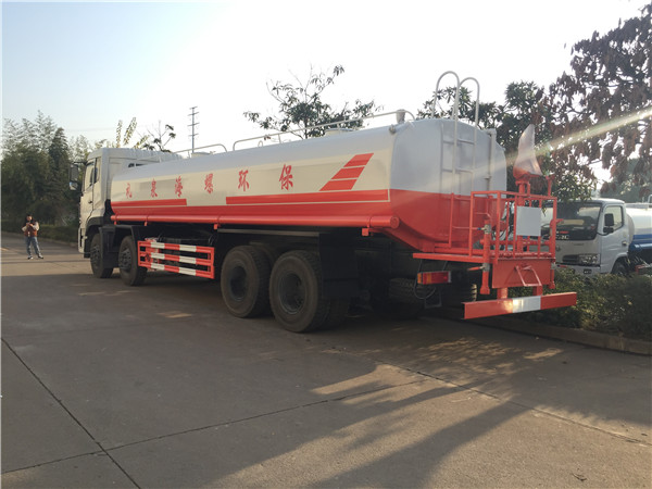 上裝配置:罐體實際容積約為20方,采用優質碳鋼板制作,帶前沖后灑,帶后操作平臺,平臺安裝綠化灑水高炮,罐頂副駕駛一側,后封頭上方帶高位花灑,配億豐灑水泵泵可自吸自排,帶消防栓接口。其他附件按廠標配齊。