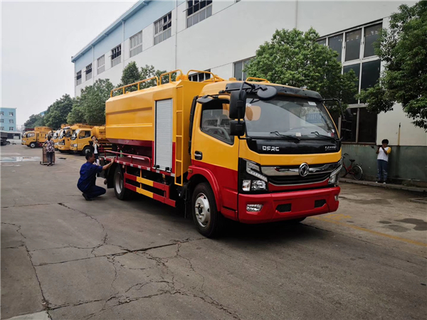 如果東風多利卡新款清洗吸污車出現了溢罐現象。我們需要清洗被污染的部位:真空泵、油汽分離器,水汽分離器、四通閥(吸污泵開關)、氣管。首先排空吸污車罐體內的污水。然后將讓吸污泵運行一會,排出四通閥、氣管內的污水,雜物(此操作時間要短,防止吸污泵磨損)。然后將吸污泵,油水分離器中被污染的機油放掉,用風槍吹干凈,并更換新的機油。水汽分離器,四通閥以及連接管道,用大量清水沖洗干凈,再用風槍吹干。最后將這些部件原樣裝回,即可照常使用。