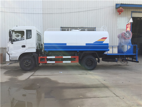 灑水車標準配置和選裝配置,有前沖、后灑、綠化澆灌、遠程水炮等裝置。采用輕質的鋁合金材料,并設置有多重安全防護裝置與報警系統。灑水車罐體采用4毫米Q235碳鋼一次鑄造成型,罐體容積12立方。