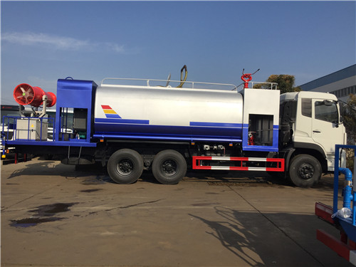 在常規(guī)灑水車的基礎(chǔ)上,加裝了抑塵噴霧系統(tǒng),外接的380V配套動力組把罐體內(nèi)的水霧最大霧化作業(yè)行程高達(dá)20-100米,穿透性好,作業(yè)效率高,大大降低了勞動力成本。可對煤堆噴灑抑塵劑、固化劑,使得煤灰不會被風(fēng)吹起,降低空氣粉塵污染。采用了遙控操作指揮系統(tǒng),可360度旋轉(zhuǎn),兼具綠化噴灑,消防應(yīng)急,除塵降塵,噴藥消毒等功能,遠(yuǎn)程遙控,使用方便。