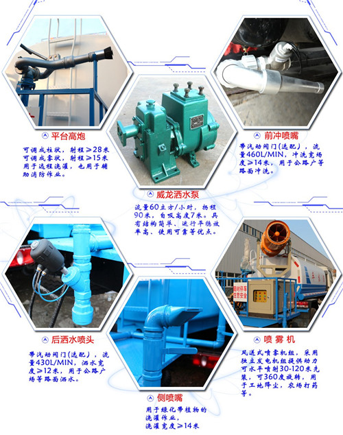 動力,將罐體內(nèi)部的液體通過管網(wǎng)噴灑出去。工作范圍:自吸高度:≤7m,灑水寬度:≥14m,最