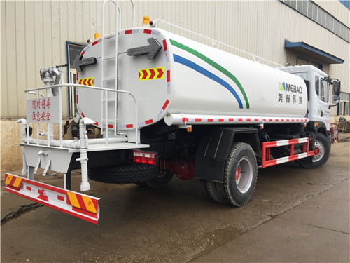 2、后灑:利用裝于車后部的兩個噴嘴將水噴成均勻的扇表形面,向路面灑水;后灑可達10米寬。