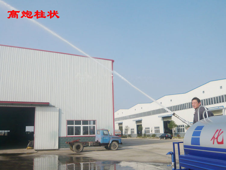 ◆ 灑水車綠化炮功能:綠化高炮位于灑水車的后工作平臺(tái),可360度全方位旋轉(zhuǎn),并可調(diào)節(jié)多種直沖狀、大雨、小雨、毛毛雨、霧狀噴灑、噴射方式--(柱狀射程≥28m;霧狀射程≥15m)。綠化炮霧狀噴灑可用于園林綠化噴灑作業(yè);綠化高炮噴射一般用于沖洗澆灌樹木;綠化炮沖洗一般用于護(hù)欄沖洗、高空建筑物沖洗等.