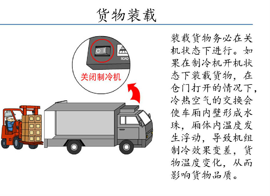 6、冷藏車正確裝卸貨物是保證了冷鏈運輸有效關鍵。