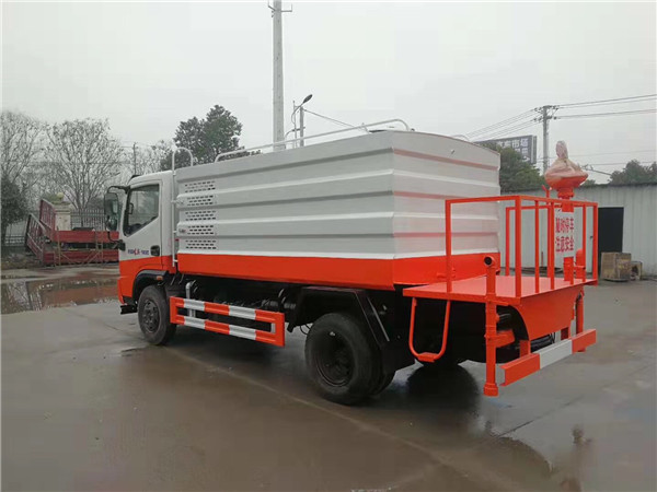 福田時代5噸抑塵車:福田時代底盤,軸距3360mm,安徽全柴490EGR發動機,7.00-16尼龍胎,帶暖風,氣剎(或油剎),不上牌抑塵車價格最低。▲垂直吸程>7米,灑水寬度>14米,射程>28米。前沖(噴)):(能將路面泥巴、塵土、垃圾沖干凈);后灑(能均勻地將水灑在路面,灑水寬度>14米)、前側噴(花灑)(均勻地將路旁綠化帶澆灌)、后工作平臺,平臺上裝綠化灑水炮(炮有大雨、中雨、毛毛雨、霧狀可調節沖洗高大樹木),灑水泵,消防接頭,自流閥,過濾裝置、人性化爬梯及側防護欄,音樂喇叭。
