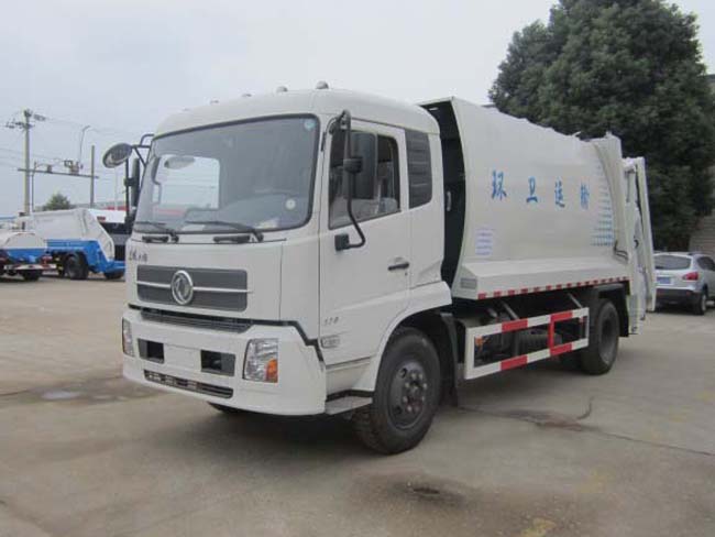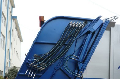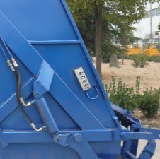 壓縮機(jī)構(gòu)(主壓板,副壓板,刮板,推板等),掛筒機(jī)構(gòu)等。主體結(jié)構(gòu)簡圖如下: 其工作原理為:人工將垃圾裝入料槽中啟動(dòng)刮板機(jī)構(gòu)將垃圾從料槽中刮升至于箱體水平位置,再通過副推板將垃圾推向箱體車頭的位置。當(dāng)垃圾裝至3立方左右時(shí)啟動(dòng)副壓板機(jī)構(gòu)將箱體內(nèi)的壓力進(jìn)行壓實(shí)處理。同時(shí)主推板也相應(yīng)的配合使用在將垃圾壓實(shí)的過程中使得垃圾內(nèi)的廢液通過箱體內(nèi)的導(dǎo)流槽流入料槽中,再通過料槽左右兩端的出液口將廢液排除。在卸料過程中,首先將副推板整體整體提升至卸料狀態(tài),再啟動(dòng)主推板將壓縮后的垃圾從箱體內(nèi)推出,從而完成一整套裝卸過程。湖北程力專用汽車有限公司所生產(chǎn)的掛架式垃圾車,其中的掛架機(jī)構(gòu)主要是為了節(jié)省人工成本降低生活垃圾隊(duì)環(huán)衛(wèi)工人的身體危害。該掛架機(jī)構(gòu)可懸掛220升及600升兩種城市通用移動(dòng)式塑料垃圾收集筒。整體效果圖如下: