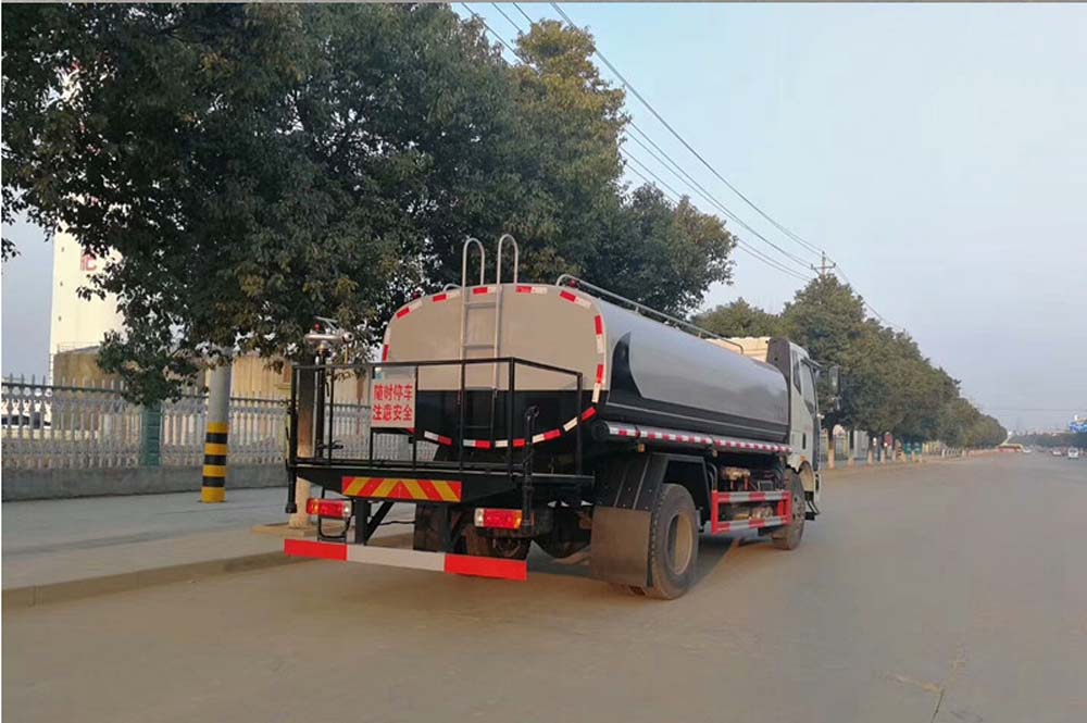 二、上裝配置: 國內(nèi)三家灑水車生產(chǎn)流水線,其中一條在我公司。罐體由國標(biāo)5mm厚優(yōu)質(zhì)碳鋼板一次性卷壓成型,二保焊行走小車自動焊接,焊縫均勻、美觀,避免了人工焊接的漏焊和虛焊,罐體內(nèi)部加固處理,并設(shè)置防浪板,罐體內(nèi)外做防銹處理,標(biāo)配前沖、后灑、側(cè)噴、后置式工作平臺,平臺帶踏梯,四周有安全護欄,平臺上設(shè)有高壓水炮,可360°旋轉(zhuǎn),可調(diào)成:直沖狀、大雨、中雨、小雨、毛毛雨。3950軸距及以上車型標(biāo)配高位花灑功能。